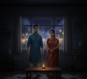 “बाहर सब के घरों में इतनी रोशनी है और हम लोग यहाँ पे अंधेरे में बैठे हैं। यह देख के मुझे अच्छा नहीं लग रहा है, सविता।” तभी तुरंत सविता बोली, “तुम्हें याद है ना? पंडित जी ने बोला था कि ज़्यादा घर में रोशनी नहीं होनी चाहिए। एक दिया जो जल रहा है, इतना ही बहुत है दिवाली के लिए, क्योंकि कहा जाता है कि दिवाली की रात कुछ आत्माएँ वापस लौटती हैं अपने घरों में और उन्हें ज़्यादा रोशनी देख के गुस्सा आता है।