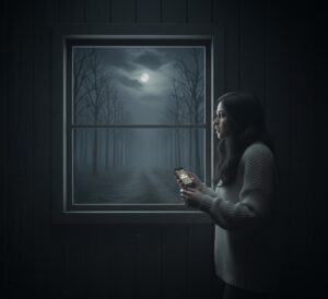 आराध्या भी इतनी डर गई थी कि उसकी इतनी हिम्मत भी नहीं थी कि वो जाकर बाहर देख ले कि क्या हो रहा है। आराध्या ने देखा कि उसकी जेब में फोन है, उसने जल्दी से फोन निकाला तो उसमें नो सिग्नल आ रहा था। तभी उसे अपने कमरे की खिड़की के बाहर से किसी के कुछ घसीटने जैसी आवाज़ आई। आराध्या को लगा शायद कोई बाहर है, अगर मैं आवाज़ दूंगी तो कोई मुझे बचाने आ जाएगा। उसने बाहर उस खिड़की से देखा तो सिर्फ़ एक सुनसान रोड और दोनों तरफ़ पेड़ ही पेड़, वो सन्नाटा देखते ही वो फिर से घबराते हुए पीछे हट गई।