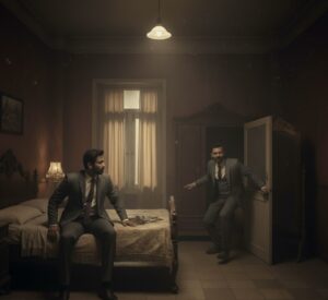 दोनों बिस्तर पर लेट गए और लेटे-लेटे अपनी-अपनी बातें करने लगे अचानक बाथरूम से पानी टपकने की आवाज़ आई। रवि उठा और बाथरूम में जाकर देखा तो नल पूरी तरह से बंद था। जैसे ही वो बाथरूमसे वापस आया, उसने देखा कि अजय खिड़की की तरफ देख रहा है। रवि बोला, “क्या हुआ?”अजय बोला, “मुझे अभी ऐसा महसूस हुआ कि जैसे मैंने किसी का चेहरा देखा—काला सा चेहरा, वो भी बिना आँखों का।” रवि ने झिड़क (हड़का) दिया, “तू पागल है कि कुछ भी उल्टा-सीधा बोलता रहता है।”
