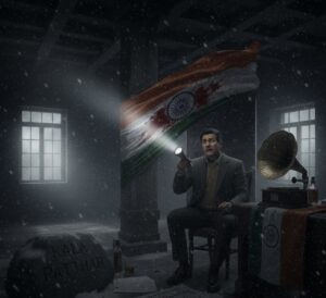 जैसे ही उसने झंडे को छूना चाहा, पूरी बिल्डिंग एक धमाके के साथ कांप उठी। जो थोड़ी बहुत लाइट जल रही थी, वह भी बंद हो गई। अंधेरे में विक्रम को सिर्फ अपनी धड़कन सुनाई दे रही थी।तभी, कोने में रखे एक पुराने ग्रामोफोन से अचानक आवाज़ आने लगी— “जन गण मन…” लेकिन वह सुर किसी उत्सव के नहीं थे। वह आवाज़ ऐसी थी जैसे हज़ारों रूहें एक साथ रो रही हों। राष्ट्रगान की रफ्तार इतनी धीमी थी कि वह किसी मातम जैसी लग रही थी।विक्रम ने पीछे मुड़कर भागना चाहा, लेकिन दरवाज़ा अपने आप बंद हो गया।