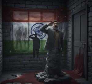 उसने देखा कि गलियारे की दीवारों पर पुराने ज़माने के सिपाहियों की परछाइयां दिख रही थीं। उनके हाथों में बंदूकें थीं और वे सब विक्रम की तरफ देख रहे थे। उनकी आंखों की जगह सिर्फ खाली अंधेरा था।”तुम कौन हो? मुझसे क्या चाहिए?” विक्रम चिल्ला पड़ा। तभी एक भारी और डरावनी आवाज़ गूंजी: “हमें सलामी चाहिए, विक्रम। उस मिट्टी की, जिसे तुमने चंद पैसों के लिए बेच दिया।”विक्रम ने देखा कि हॉल के बीच में लगा हुआ वह तिरंगा धीरे-धीरे बड़ा होने लगा। उसका कपड़ा पूरे हॉल में फैलने लगा।
