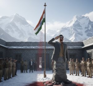 उसने नीचे देखा तो उसके पैर पत्थर में बदल रहे थे। विक्रम गिड़गिड़ाया और बोला, “नहीं! मुझे माफ कर दो!”तभी उसके कान में वही आवाज़ आई: “देश के गद्दारों के लिए माफी नहीं, सिर्फ सज़ा होती है। तुम्हें इसी तिरंगे की रक्षा करनी थी, अब तुम हमेशा के लिए इसका हिस्सा बनोगे।”विक्रम की परछाई उसके शरीर से अलग होकर झंडे के पास जाकर खड़ी हो गई। उसका शरीर अब पूरी तरह ठंडा पड़ चुका था। उसका हाथ अपने आप उठा और माथे तक गया—एक आखिरी सलामी के लिए। जैसे ही उसने सलामी दी, वह वहां से गायब हो गया।