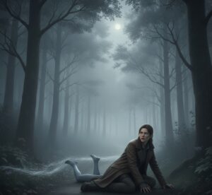 एमी चलते हुए अपनी वीडियो में उस जगह के डीटेल्स को डिस्क्राइब कर ही रही थी कि तभी उसके पैरों में कुछ फंसा और वो लड़खड़ा कर रोड पर गिर गई। वो रोड दोनों तरफ़ से जंगल से घिरी हुई थी और वहाँ दूर दूर तक। कोई नहीं था। वहाँ बस पेड़ ही पेड़ थे तो एमी को लगा कि किसी पेड़ की कोई टेहनी जमीन पर गिर गई होगी और उसे दिखी नहीं होगी। एमी ने उठकर जब अपने कपड़े झाड़े और जैसे ही पीछे मुड़ी उसने देखा। उसके पैर किसी टहनी पर नहीं बल्कि किसी और के पैरों से टकराए थे। ये देख कर बहुत ज्यादा खबरा गई उसके देखते देखते ही उन नीले पैरों को कोई अंधेरे में घसीटता हुआ जंगल की तरफ ले गया। ये देखने के बाद।