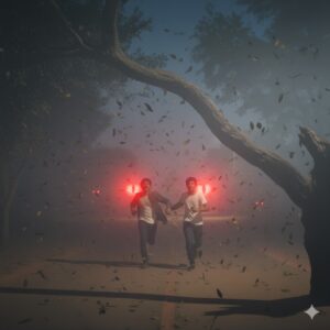 सोचा समजे तेज तेज भागने लगे पूरी रोड पे बस वही दोनों भाग रही थे हर जगह बस डर ही डर था क्यूकी एक तो अँधेरा उपर सा पड़े और झड़िया l पड़े की परछाईं रोड पे ऐसी लग रही थी जैसे वहाँ भी कोई खड़ा हो और कुछ ही देर मैं पता न्ही कहा सा कोरहा सा आना लगा जब एक दम से कोराह आया तो उससे डर और लगने लगा ,जब विशाल ने देखा की कोराह मैं कुछ न्ही दिख रहा तो विशाल ने फिर अपने फ़ोन की फ़्लैशलाइट को तेज करा आगे का रास्ता देखने के लिए लेकिन सब ठीक था जैसा उन दोनों को लग रहता आसा कुछ न्ही था