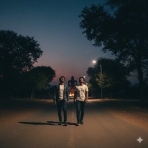 जब दशहरे का मेला खत्म हो गया तो । विशाल और सुरज, दोनों, उस दशहरा के मेला मैं बहुत थक गए और धीरा धीरा घर वापस जा रहा थे । रावण का पुतला पूरी तारा  से जल चुका था | रात जाधा होगी थी इसलिए पूरी सड़क सुनसान होगी थी। सुनसान होना के मारे जब विशाल और सूरज चल रहे थे तो उनके पारो की सरसराहट हो रही थी अंधेरा इतना था कि पाड़ो की परछाई देखने से भी डर लग रहा था ,उस अँधेरा मैं देखना सा आसा लग रहा था कि जैसे वह कोई खड़ा हो ।“सूरज और विशाल दोनों हस्ते