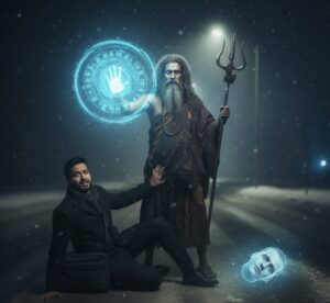 एक अंतर्राष्ट्रीय कंपनी में काम करने वाला ब्रांच मैनेजर मयंक जिसे एक दिन घर जाने में काफ़ी देर हो गई थी। और दूसरी बात, ठंड का भी मौसम था जिसके कारण रात भी जल्दी हो गई थी। मयंक अपने ऑफिस से निकल कर अपने घर की तरफ़ चल ही रहा था कि तभी उसे पीछे से आवाज़ आई, “रुक जाओ!” मयंक तुरंत रुक गया और पीछे मुड़ के देखा तो वहाँ कुछ भी नहीं था। उसने उस चीज़ को नज़रअंदाज़ करा फिर आगे बढ़ने लगा। फिर उसे दोबारा आवाज़ आई, “नीचे देखो!” मयंक ने रुककर ध्यान से सामने की तरफ़ नीचे रोड पर देखा तो उसे दूर रोड पे कुछ चमकता हुआ दिखा।