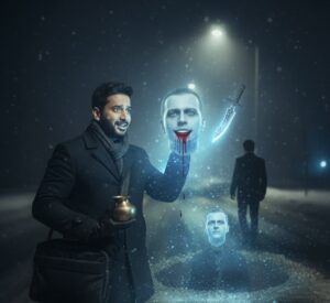 ” मयंक बोला, “क्या करना होगा?” सर बोला, “तुम्हें कहीं से एक लोटा लाना होगा।” मयंक बोला, “पर मैं वह लोटा कहाँ से लाऊँगा?” सर ने बोला, “अपना एक हाथ आगे करो।” जैसे ही उसने अपना हाथ आगे करा, उसके हाथ में एक लोटा आ गया। फिर से वह सर उसे और थोड़ी दूर ले गया। थोड़ी दूर जाते ही उसे एक इंसान जाते हुए दिखा। तभी सर ने बोला, “जाओ और इस लोटे में उस इंसान का ख़ून ले के लाओ।” तभी मयंक डरते हुए बोला, “नहीं, मैं ऐसा काम नहीं करूँगा।“सर बोला, “अगर तुमने मेरा काम नहीं करा तो मैं तुम्हें मालामाल करने की जगह जान से मार दूँगा।