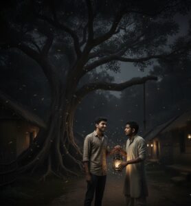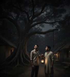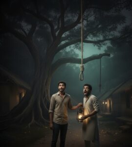 ‘फाँसी वाला पेड़’ कोई ऐसा-वैसा पेड़ नहीं है बल्कि वह एक विशाल पेड़ है जिसका तना बड़ा और मोटा है और बहुत सारी शाखाएँ हैं, जिसे सब गाँव वाले ‘फाँसी वाला पेड़’ बोलते थे। उस अँधेरी रात में अरविंद और विजय दोनों रात के समय घूम रहे थे, जैसे कि मौसम का आनंद ले रहे हों। विजय ने कहा, “भाई! तू ये उल्टी-सीधी बातों में क्यों लगा रहता है? एक बात सोच, अगर सच में भूत-प्रेत होते, तो तुझे लगता है कि वे हमें जीने देते? अब तक तो हम सबको मार भी दिया होता।” विजय ने उसे तुरंत डाँटकर बोला, “तू पागल है क्या? ऐसा मत बोल, क्योंकि ऐसी चीज़ों का मज़ाक नहीं बनाते हैं।