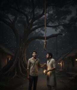 इस प्रकार, अरविंद और विजय, अपनी-अपनी मान्यताओं (विश्वास और अंधविश्वास) के कारण, गाँव के सबसे डरावने रहस्य, ‘फाँसी वाला पेड़’ का शिकार बन गए। अरविंद का मज़ाकिया स्वभाव और विजय का डर दोनों ही उन्हें उस भयानक जगह तक ले गए, जहाँ से कोई वापस नहीं आता। कहानी यह दिखाती है कि कुछ चीज़ों को हल्के में लेना ख़तरनाक हो सकता है, और अंत में डर और रहस्य दोनों ने ही दोस्तों को निगल लिया। अब वे दोनों भी उस ‘फाँसी वाला पेड़’ के डरावने इतिहास का हिस्सा बन गए।