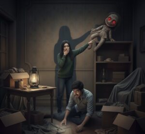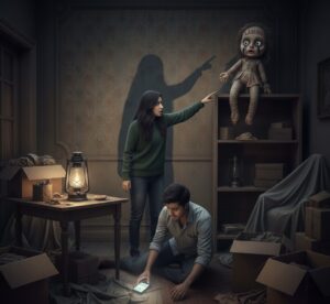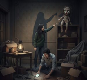 डरते-डरते दोनों को रात के 1:30 बज चुके थे। उन दोनों को अब एक आवाज़ सुनाई दी। वो आवाज़ ऐसी थी जैसे किसी ने उस गुड़िया को अपनी जगह से हिलाया हो। जब अमित ने उस गुड़िया को देखा तो वो सच में अपनी जगह से हिल गई थी, और अब उस गुड़िया का चेहरा पहले जैसा नहीं था। अब उस गुड़िया की आँखें लाल हो चुकी थीं। प्रिया ने जैसे ही उस गुड़िया की आँखें देखीं, प्रिया का चेहरा पीला पड़ चुका था। प्रिया ने अमित को बोला, “अमित, यह सब क्या हो रहा है हमारे साथ?” अमित ने बिना कुछ बोले वो गुड़िया फिर उठाकर शेल्फ के ऊपर रख दी।