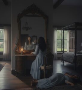 नेहा और रोहन एक तरफ़ तो पुराने बंगले को देख के कुश हो रहे थे, लेकिन नेहा के कमरे का पुरानी ड्रेसिंग टेबल का बड़ा शीशा जल्द ही उनकी खुशियों के लिए डरवाना खतरा बन जाता है। धीरे-धीरे नेहा को शीशे में अपनी परछाईं में अजीब बदलाव (मुस्कुराना, पलक झपकना) महसूस होते हैं। उसका डर तब सच साबित होता है जब शीशे में कैद उसकी ‘असली’ परछाईं उसे धमकाती है और खुद को असली नेहा बताती है। अंत में, शीशे से बाहर निकलकर वह डरावनी परछाईं नेहा का रूप ले लेती है और असली नेहा को पत्थर की तरह जमा देती है। जब रोहन घर लौटता है, तो वह बदल चुकी ‘नेहा’ को पहचान नहीं पाता। वह डरावनी नक़ली नेहा रोहन को भी गला दबाकर मार देती है, और इस तरह वह पुराना बंगला और उसका शीशा उनके नए जीवन के लिए घातक अंत बन जाते हैं।